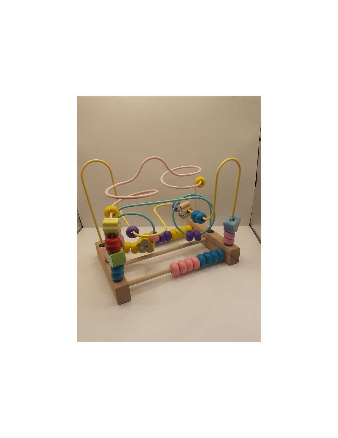Circuitul labirint cu bile si animalute din lemn, pe trei trasee din sarma viu colorate.